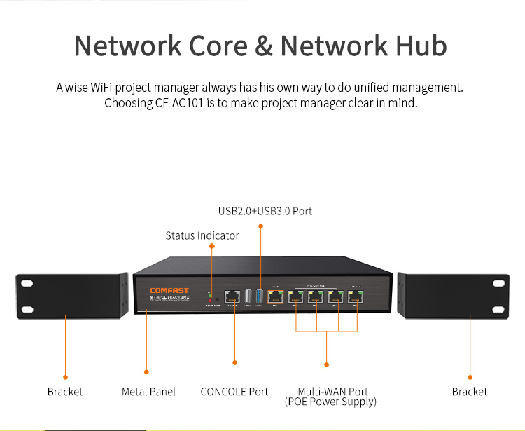 Comfast AC core gateway smart wifi controller orange Gigabit Core Gateway CF-AC101 Multi APs Management with POE LAN/WAN Ports