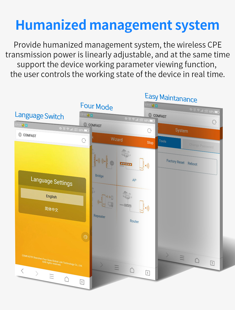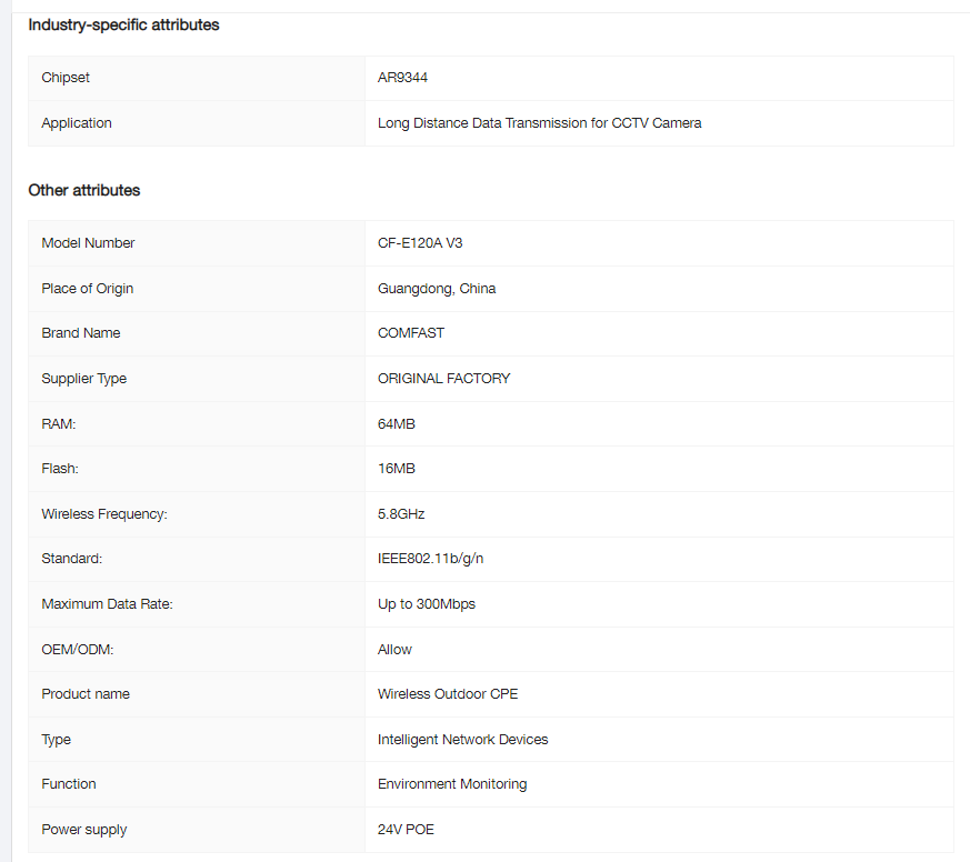 Comfast E120A V3 Upgrade 300mbps Qualcomm AR9344 Project Outdoor Wifi Wireless CPE for Security Monitoring CCTV Camera