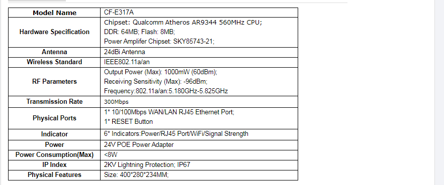 CF-E317A 5.8ghz 300mbps 11km long range outdoor wireless hotspot wimax access point CPE base station