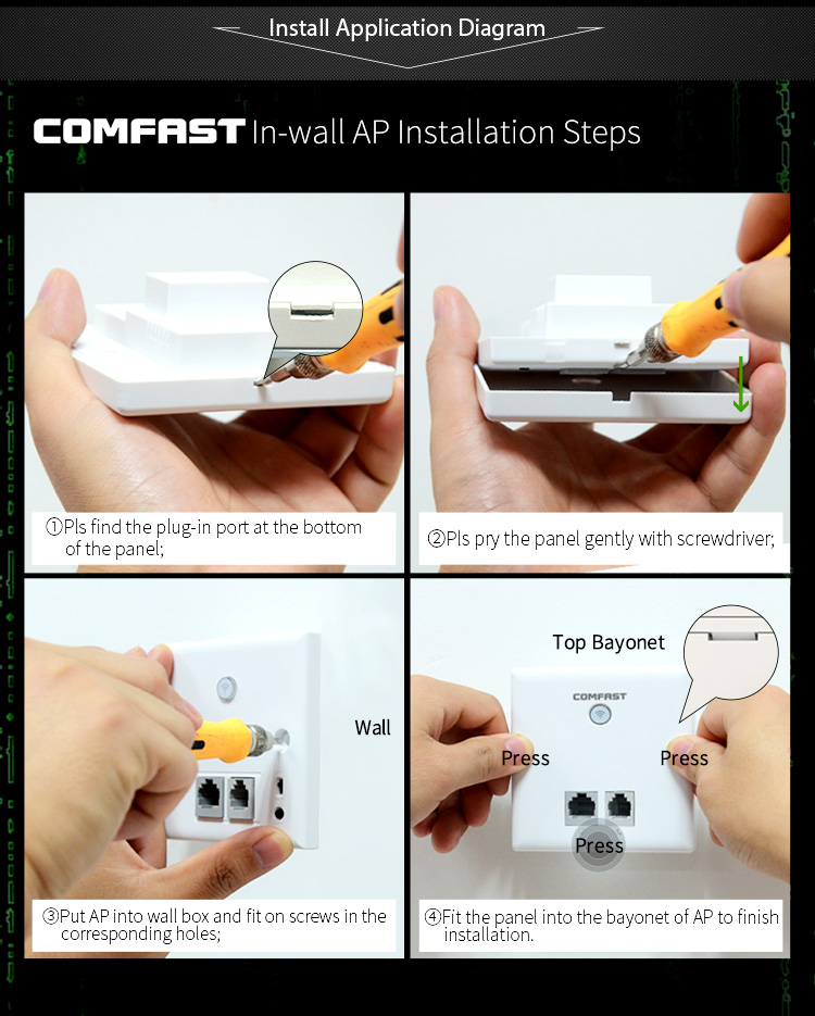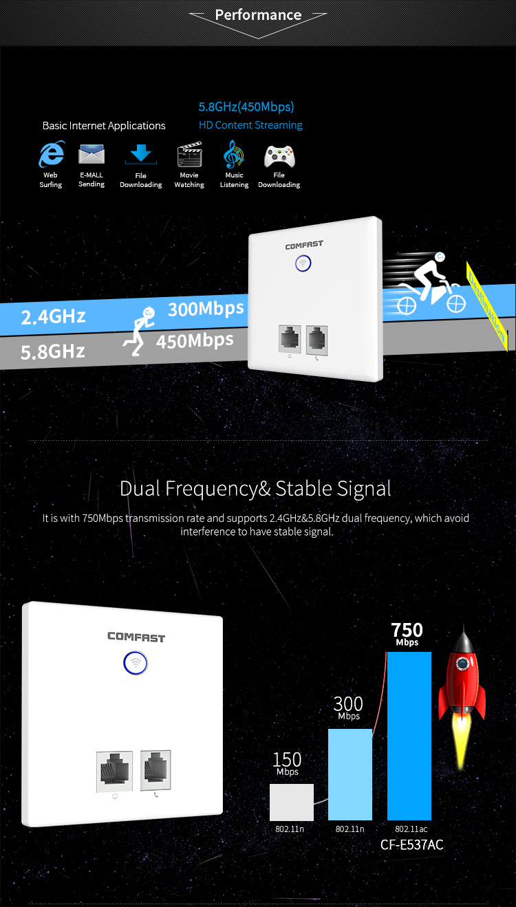 750Mbps COMFAST Wireless In-Wall AP Transmitter and Receiver Dual Band WiFi Access Point CF-E537AC