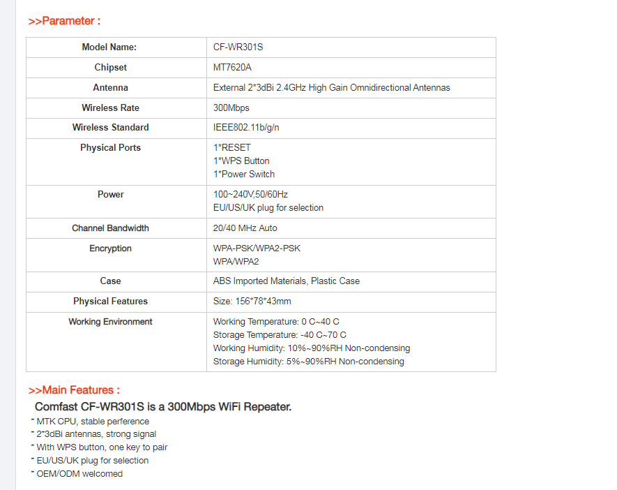 2022 New Comfast CF-WR301S 802.11n 2.4ghz 300Mbps WiFi Booster Wireless N Repeater Range Extender