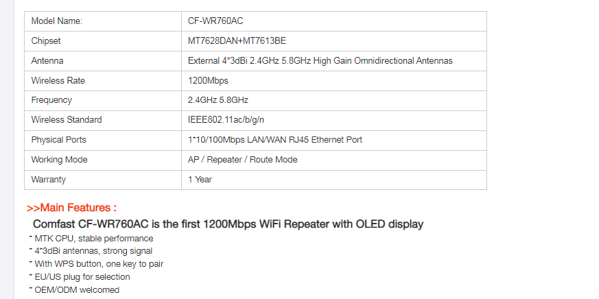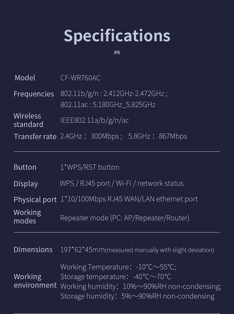 CF-WR760AC Wholesale price wifi repeater wireless extender 1200mbps