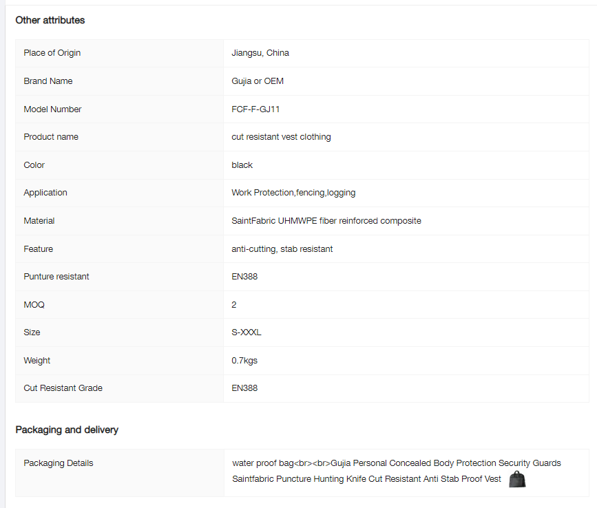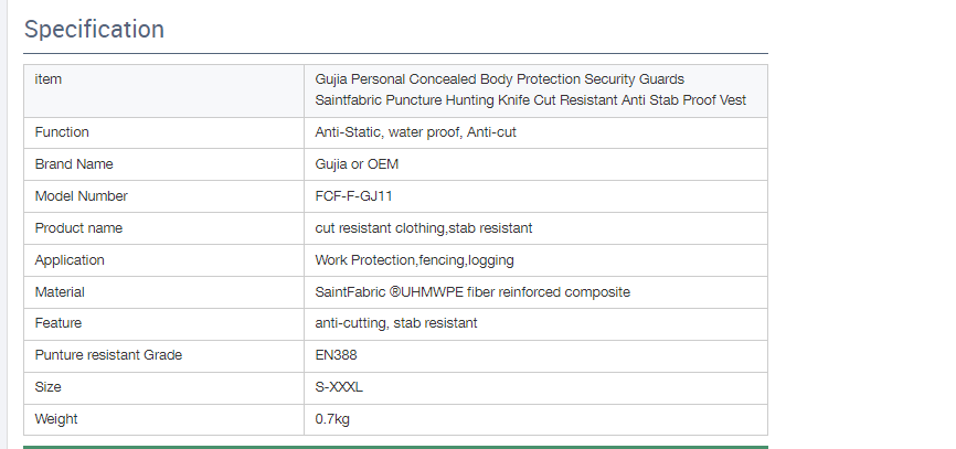 Gujia Personal Concealed Body Protection Security Guards Saintfabric Puncture Hunting Knife Cut Resistant Anti Stab Proof Vest