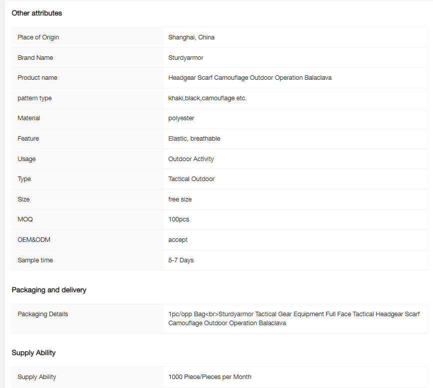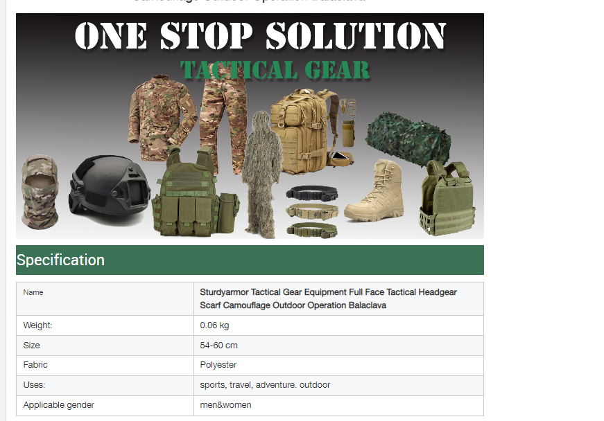 Sturdyarmor Tactical Gear Equipment Full Face Tactical Headgear Scarf Camouflage Outdoor Operation Balaclava