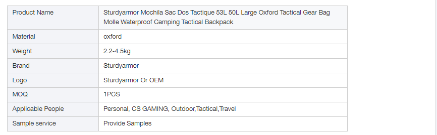 Sturdyarmor Mochila Sac Dos Tactique 53L 50L Large Oxford Tactical Gear Bag Molle Waterproof Camping Tactical Backpack